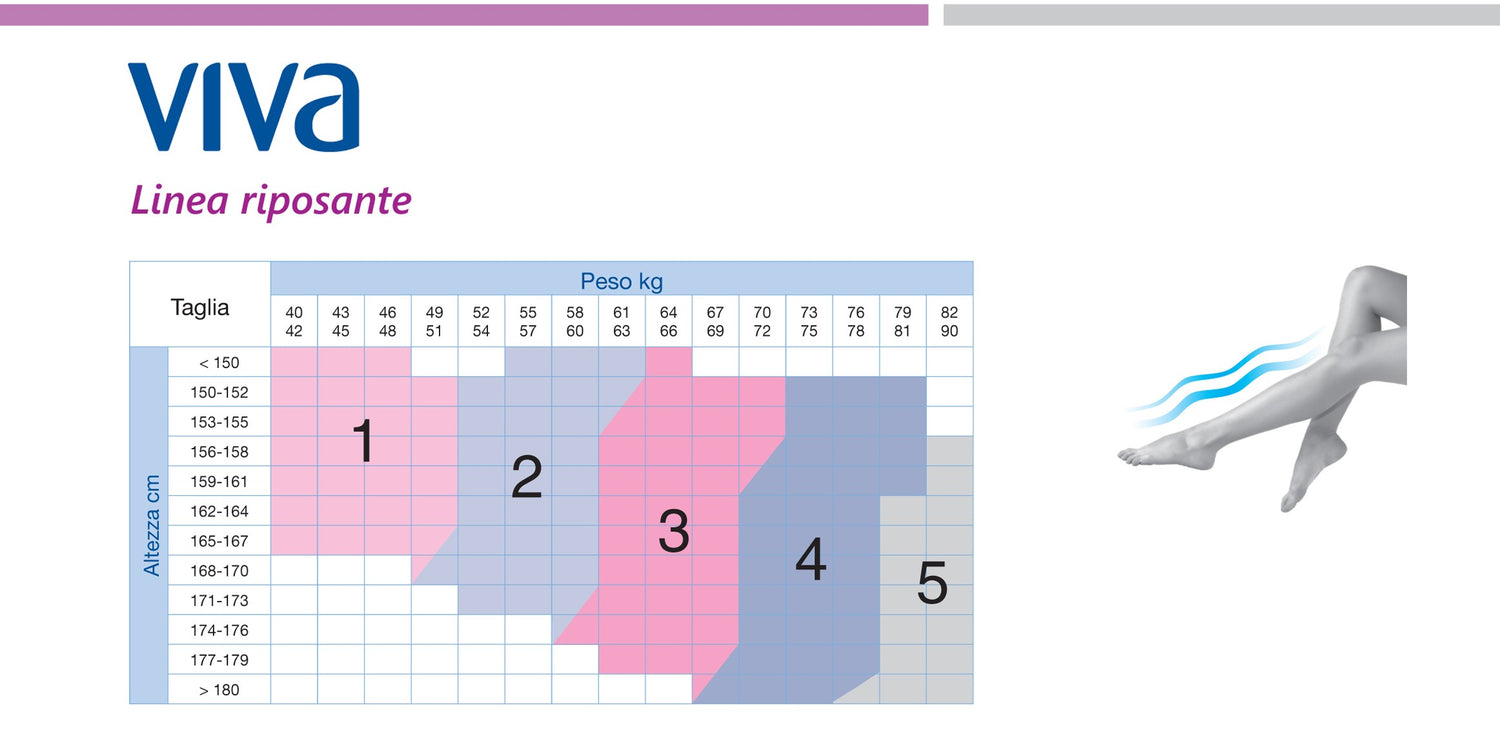 Linea completa di calze riposanti a compressione graduata morbide e trasparenti a maglia liscia. Alleviano pesantezza, gonfiore e stanchezza, danno un effetto tonificante e snellente a tutta la gamba.